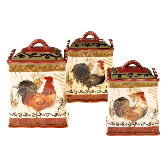 Certified International Tuscan Rooster 3 Piece Canister Set Bed