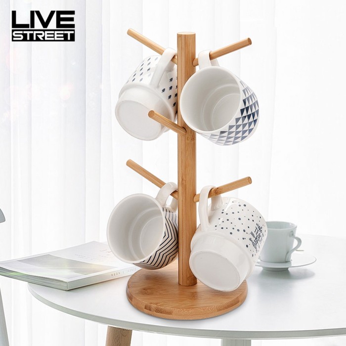 Jual Livestreet Tree Shape Wood Coffee Tea Cup Rack Holder Mug